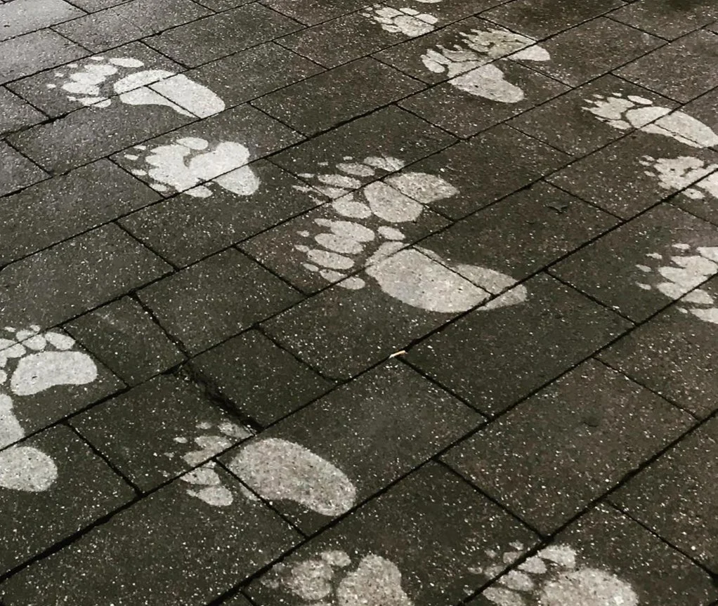 Een mooi creatief voorbeeld waarin de regen in Göteborg wordt omarmd zijn de verschillende kunstwerken die alleen te zien zijn in de regen. Bijvoorbeeld met deze tijgerpoten op straat.