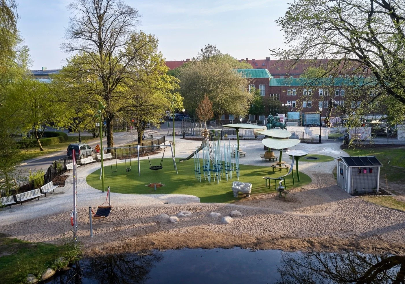De speeltuin Regnlekplatsen is op zijn best tijdens regenachtige dagen. De speeltuin werd ontworpen door bureau 02Landskap en werd in 2019 geopend. De speeltuin is fraai gelegen in het Renström Park, vlakbij Universeum en Liseberg.